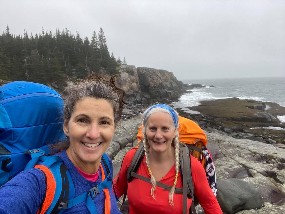 I can't remember now, it if was at supper on the ledge or when we were tucked in our down bags in the craggy cliff, when Stacey said, "We are awesome." I kid a lot about being great, perfect, and even sometimes forget to take my humble pill. But deep down, I am just as self-conscious as the next person. At that moment though, Frankly, I had to agree with her. We were awesome, at least we thought we were. There we were, two gals in our 30's plus 20+ years of wisdom, camping on the ocean's edge.